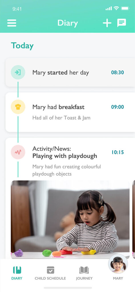 You can share each child’s messy play creation through Ovivio’s online diary, celebrating their hard work with all family members with approved access.