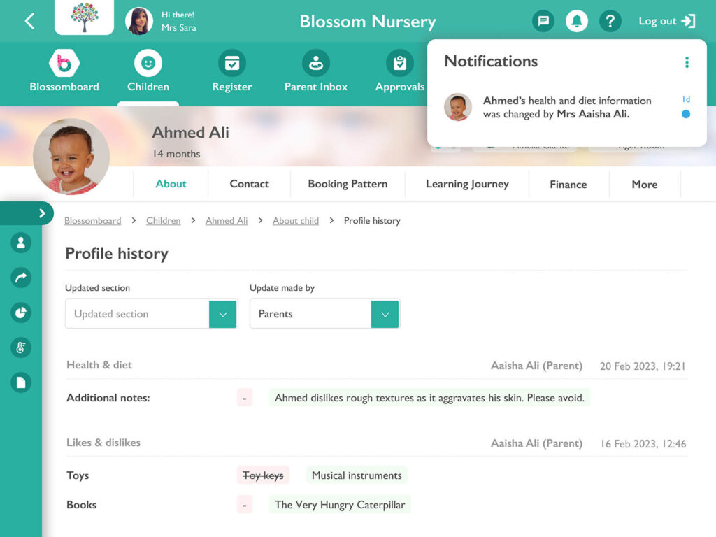 Ovivio’s Child Profile allows parents to add new likes and dislikes easily at any time, helping your nursery practitioners plan fun sensory activities.