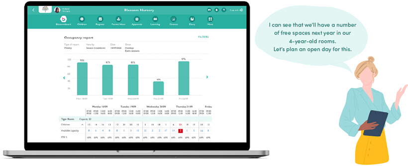 Having access to good nursery software helps leadership teams to easily spot areas in need of improvement. Relieving some of that data gathering and interpreting stress placed upon leaders. Whether it is seeing the number of children they have on the register currently, or who is moving into primary school next year, or a forecast in available spaces upcoming next year. This supports your leaders to make informed decisions on how to act, creating a sense of fulfilment and accomplishment in their position at your nursery.