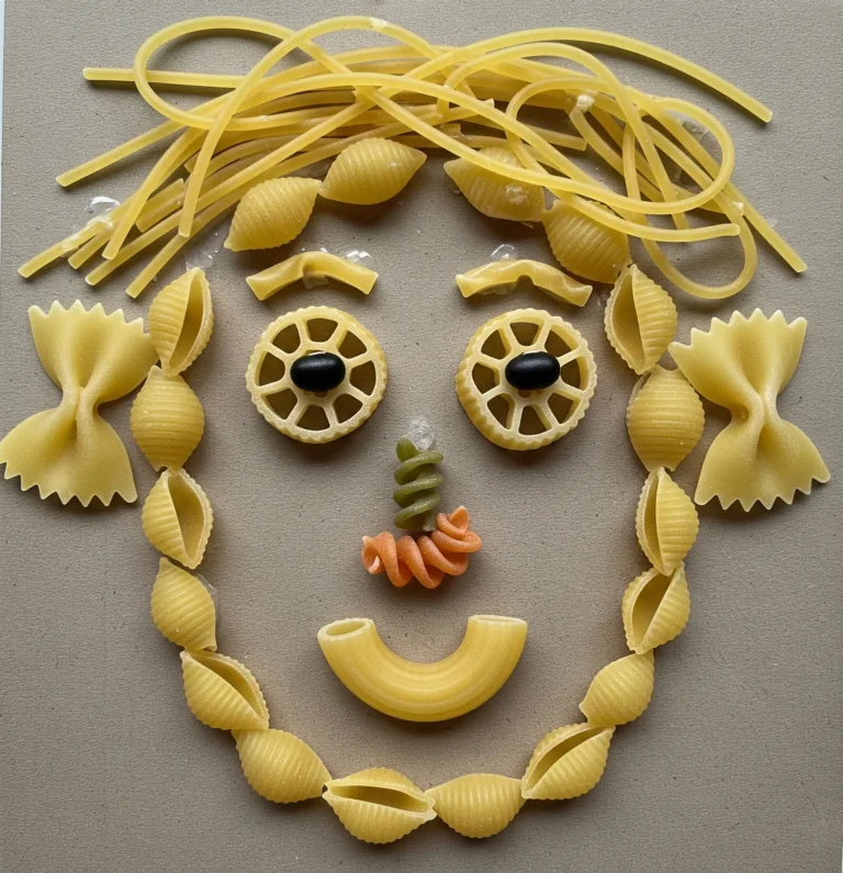 Encourage children to create self-portraits using a variety of loose parts such as buttons, fabric scraps, wool, natural materials, and pasta. Invite them to look in a mirror as they create and talk about their features, like eye colour, hair type, skin tone, etc.