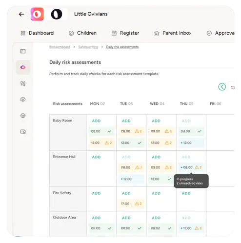 Save time and keep Ofsted compliant with Daily Risk Assessments filled in and stored directly in your Ovivio platform.