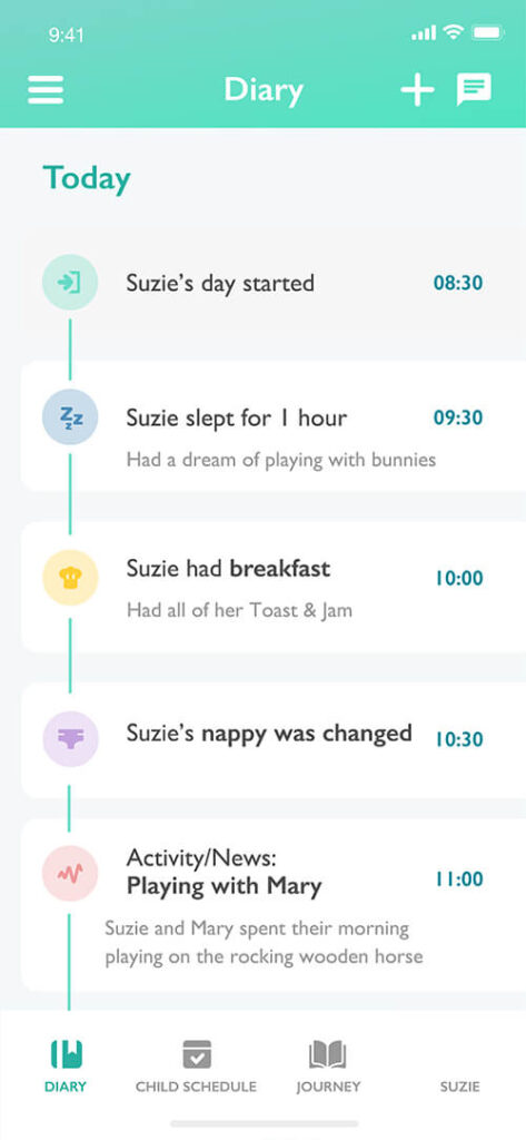 First-time parents can be particularly anxious about leaving their child when they begin nursery; some parents and children may need additional support with steps to settling into the nursery routine. During parent walkarounds, share the importance of having transparent practices with the families. Highlight the diary timeline feature which will show parents that all important information is logged such as bottles, nappy changes, meals and sleep time via the Ovivio App.
