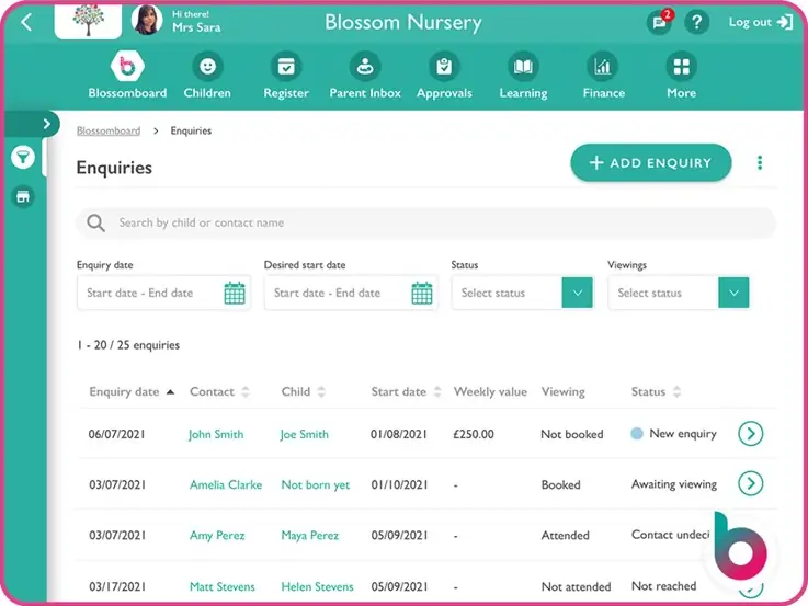 - Conversions from walkarounds and enquiries – how many families who visit your nursery go on to enrol? A low conversion rate might mean rethinking your tour approach or parent communication.