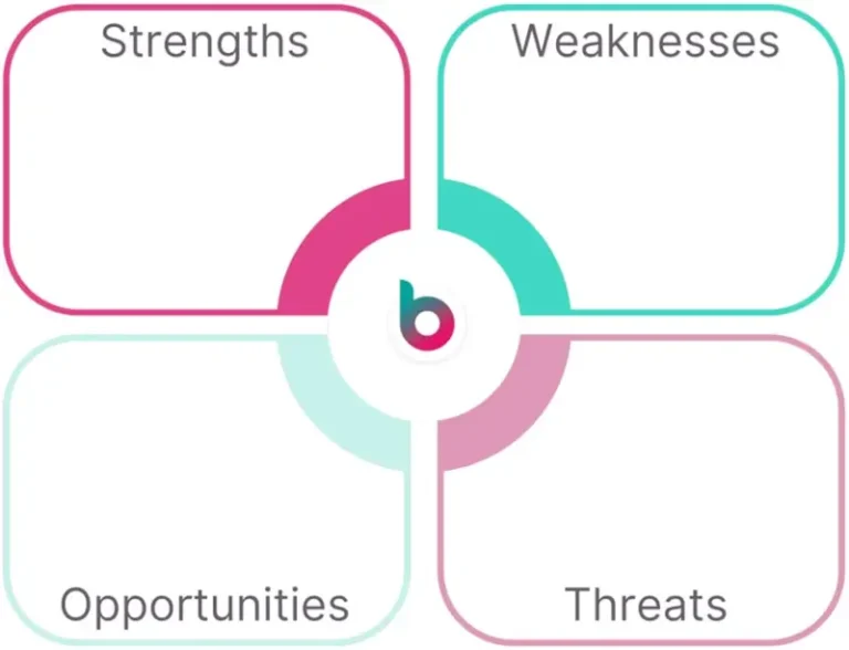It’s a simple but powerful tool to help you understand what you’re doing well (strengths), where you could improve (weaknesses), where there’s room for growth in the market and your business (opportunities), and any potential outside challenges (threats).