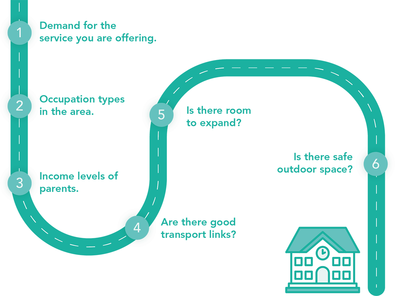 What should you look for when choosing a location for your nursery? Firstly, there needs to be a need in the area for the type of service/child care you are offering. Every local authority has Childcare Sufficiency Assessments which are legally required to be conducted every 3-5 years. This is a good starting point to understand the demand based on local birth rates and the supply (how many nurseries exist).