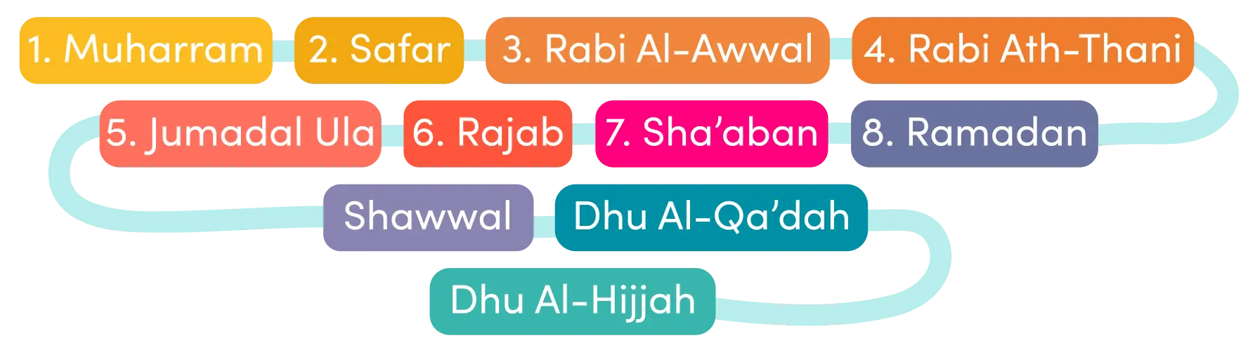 The 12 months of the Islamic Calendar all have a specific focus often linking to the season of the year or associated with the story of Islam and the Prophet’s journey to spread the word of Islam.