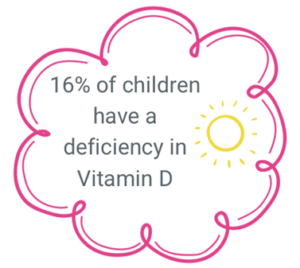 Calcium is needed to grow strong bones and aid muscle development and repair. This is why children require a higher amount of Vitamin D than adults. Deficiency in the sunshine vitamin can lead to weak bone formation and growth (like the condition rickets).