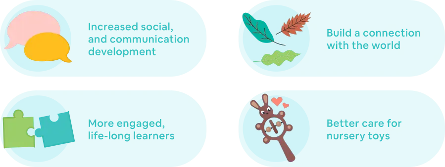 The benefits available from encouraging curious play across all areas of development are significant. Explaining your reasoning of why these are your learning methods with parents can shape the flexible and interactive activities they may try with their child at home. And ultimately, this encourages children to step away from their technical devices and engage with the world around them.