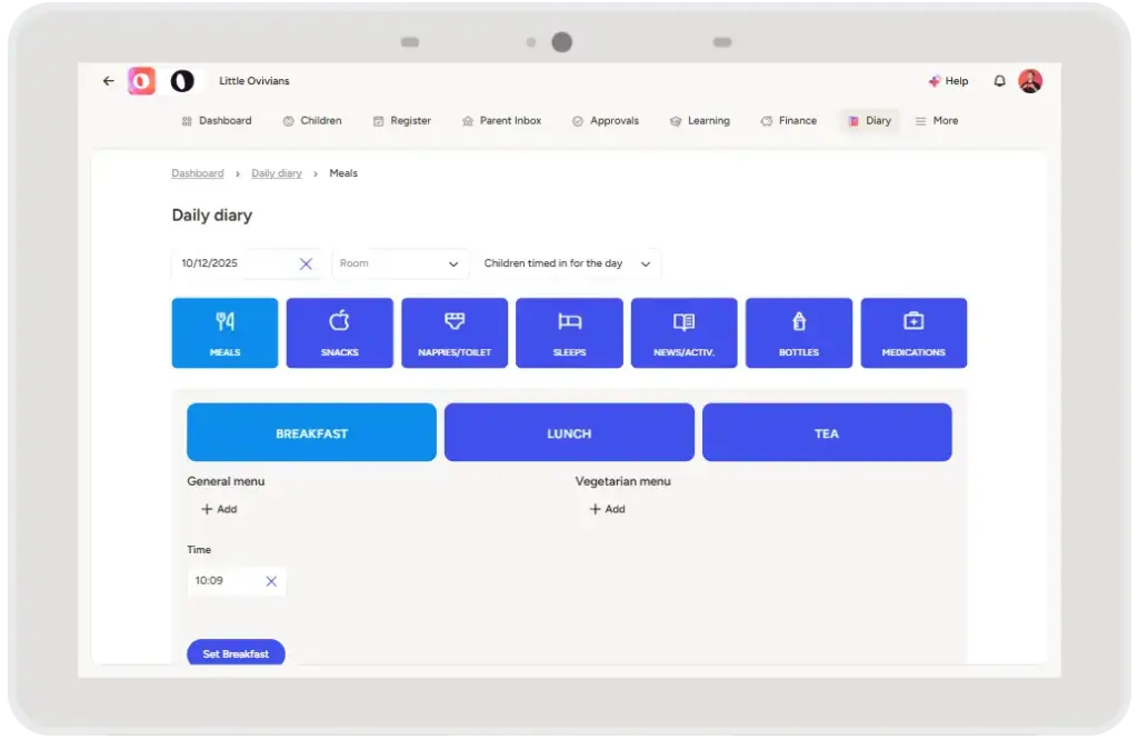 Keep parents informed and reassured by easily sharing children’s diary updates to the Parent App about meals, nappy changes, bottle feeds, sleeps and all of the care their child receives whilst at nursery.