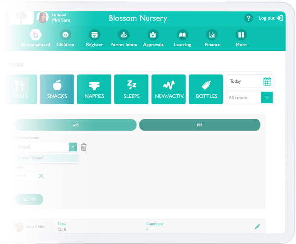 Children’s Diary Meal & Snack Times Set and log meals for all children with ease. Edit details and add important comments before sending the update to the Parent App. Learn more Menus Create Customisable Menus Create menus that can be applied to all children in attendance. Create general and vegetarian menus.Save custom meal items for the future.Meals for breakfast, lunch, tea and snack time. Get Started Log meals Easily Apply Meals To Children Always be sure allergies and dietary requirements are factored in for meals for children. Monitor allergies and dietary requirements.Input the amount children have eaten.Important comments for the parents. Get Started Parent communication Send Meal Updates to Parents Keep family members informed by delivering children’s diary updates straight to their phone. Approve diary entries to send to parents.Parent’s stay in the know with notifications.Have a reference point for handovers. Get Started Book a Demo We’ll get back to you within 24 hours to chat more. Get a free demo