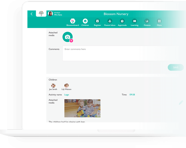 Children’s Diary Share Activities With Parents Bring the focus back on the special moments for children in attendance by sharing fun activities in the moment with parents. Learn more Easily add updates Individual or Group Activities Capture the wonderful moments at the nursery with the children and share them with the parents. Filter to quickly log activities for a room.Each child’s completed activities total each day.Enhance communication with families. Get Started Share with parents Upload Media & Tag Children Delight parents during their day with a photo of their child happy and enjoying an activity at nursery. Tag multiple children.Reassure parents with photos.Parents can download images to their device. Get Started Parent communication Send Activity Updates to Parents Keep family members informed by delivering children’s activities straight to their mobile phone. Approve diary entries to send to parents.Parent’s stay in the know with notifications.More focus on the delightful moments. Get Started Book a Demo We’ll get back to you within 24 hours to chat more Get a free demo